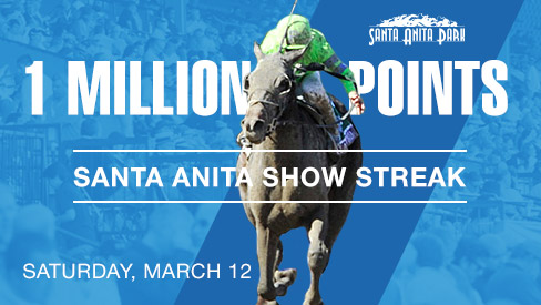 TwinSpires is rising to the occasion, matching the numerical value of the Big 'Cap, by offering a 1 Million Points prize on the card. All you have to do to win is record the longest streak of winning Show bets this Saturday at Santa Anita.