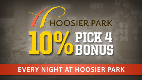 The Hoosier Park harness meeting is back in action and we're bringing the 10% Pick 4 Bonus back with it. Starting April 2, every time you cash a winning Pick 4 ticket at Hoosier Park, we'll give you a bonus equal to 10% of your gross winnings, up to $500 per night.