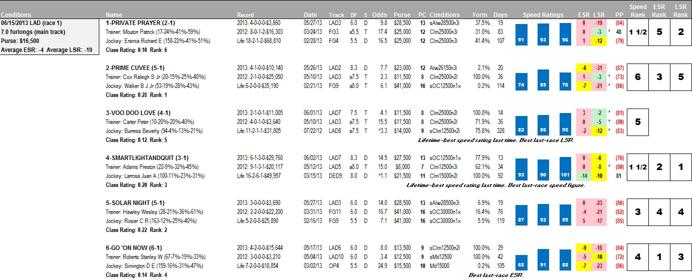 To demonstrate this, let’s take a peek at a couple of races from Louisiana Downs on Saturday, June 15: